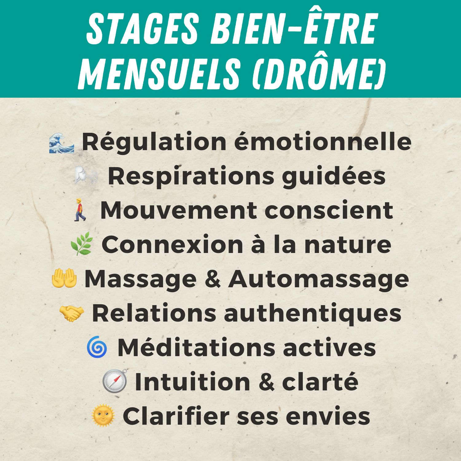 Aujourd’hui, j’ouvre ces espaces pour transmettre ce qui m’a réellement aidé : des chemins concrets pour se réguler, s’écouter, et retrouver le plaisir d’être vivant.